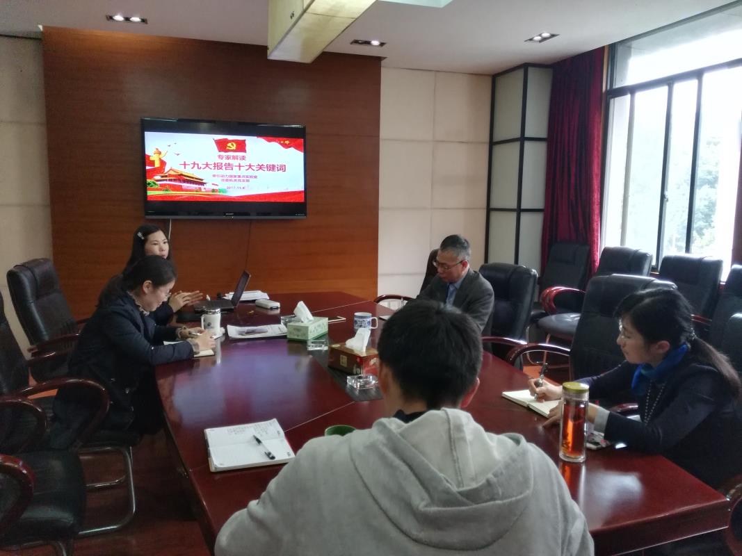 2017年10月18日,中国共产党第十九次全国代表大会在北京人民大会堂隆重开幕。习近平代表第十八届中央委员会向大会作报告,大会的主题是:不忘初心,牢记使命,高举中国特色社会主义伟大旗帜,决胜全面建成小康社会,夺取新时代中国特色社会主义伟大胜利,为实现中华民族伟大复兴的中国梦不懈奋斗。郭鑫鑫书记首先带领全体与会成员学习了大会报告,从十个部分学习了十九大的关键词。其次,郭鑫鑫书记还带领大家共同学习了习近平总书记“7.26”讲话精神。