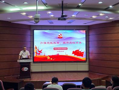 党委书记郭俊为各党支部书记、师生党员代表、发展对象和入党积极分子代表讲授了《加强党性教育,提升党性修养》主题微党课。