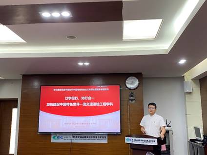 党委书记庞烈鑫同志以《以学促行、知行合一,加快建设中国特色世界一流交通运输工程学科》为题,面向领导班子成员、教师代表等开展了专题党课。