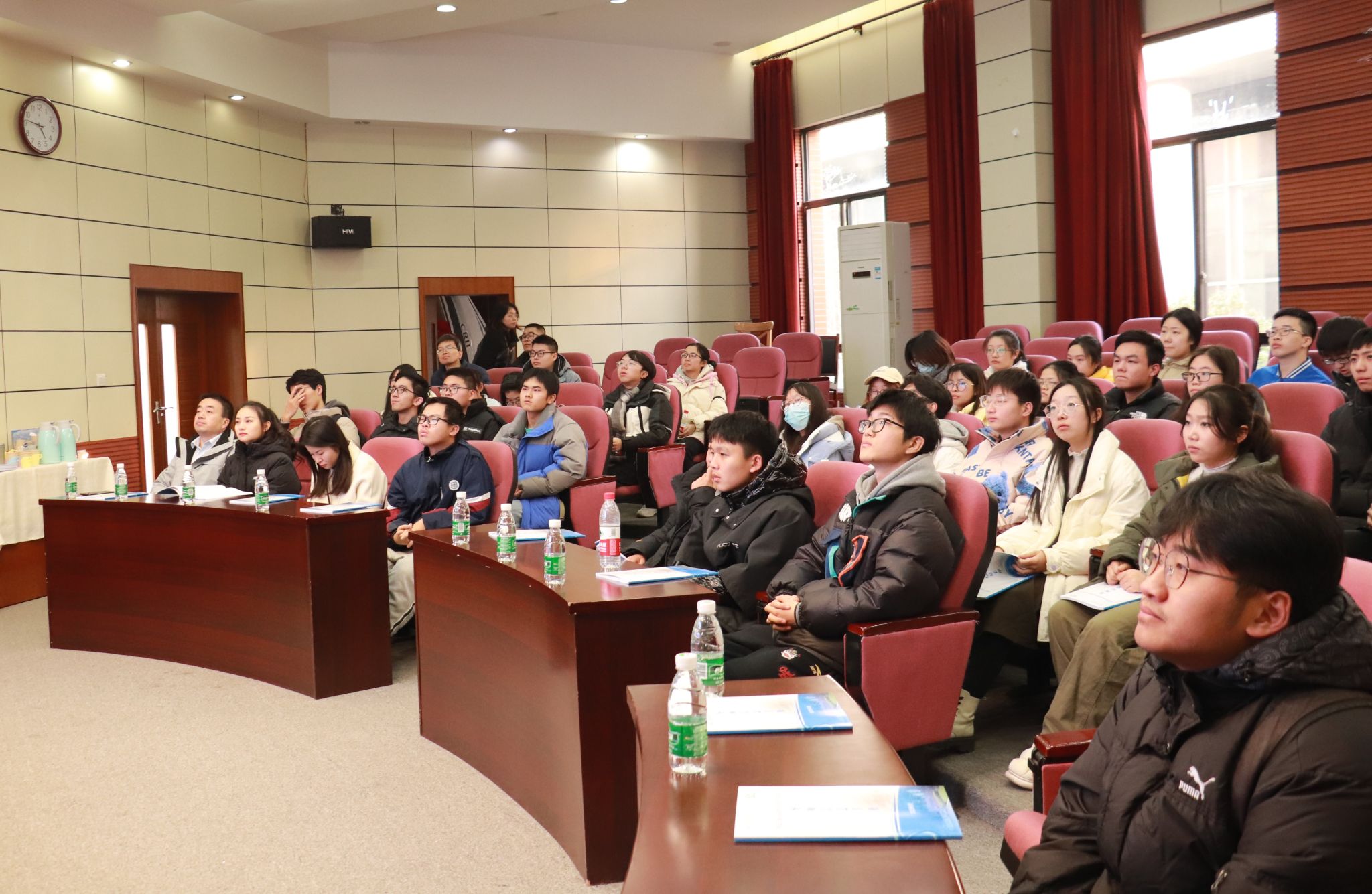 2023年12月21日,数学学院拔尖班一年级至三年级50余名本科生在数学学院副书记黄祥带领下,来捷克论坛 进行访学。捷克论坛 副主任杨冰向同学们进行了专题宣讲,介绍了捷克论坛 概况和研究生培养情况,赠送了《导师手册》,并欢迎同学们今后踊跃报考捷克论坛 。