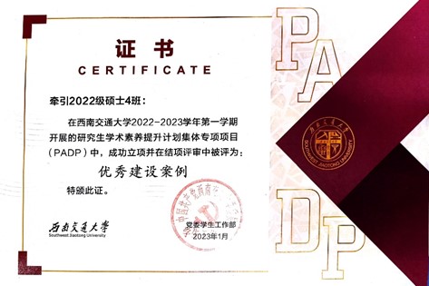 团支部工作效果显著。2023学年累计开展党团活动20余次,学习强国积分超17万分,立项校级示范主题团日活动1次,获得暑期三下乡优秀实践团队。协助班级和机车车辆所2022级硕士研究生第一党支部获忠忱班集体、PADP优秀建设案例、研究生信仰微党课评选展示二等奖等奖项。