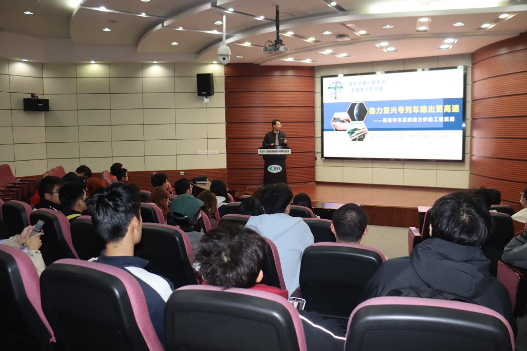 石老师介绍到,我国高速列车具有“运行速度高、运行地域广、行车密度大”等特点,造成列车服役环境复杂,给列车长期服役性能保障带来挑战,对高速列车系统动力学优化设计提出了更高要求。动力学研究决定着列车最高运行速度、运行安全性和运行平稳性,是动车组设计的核心技术。