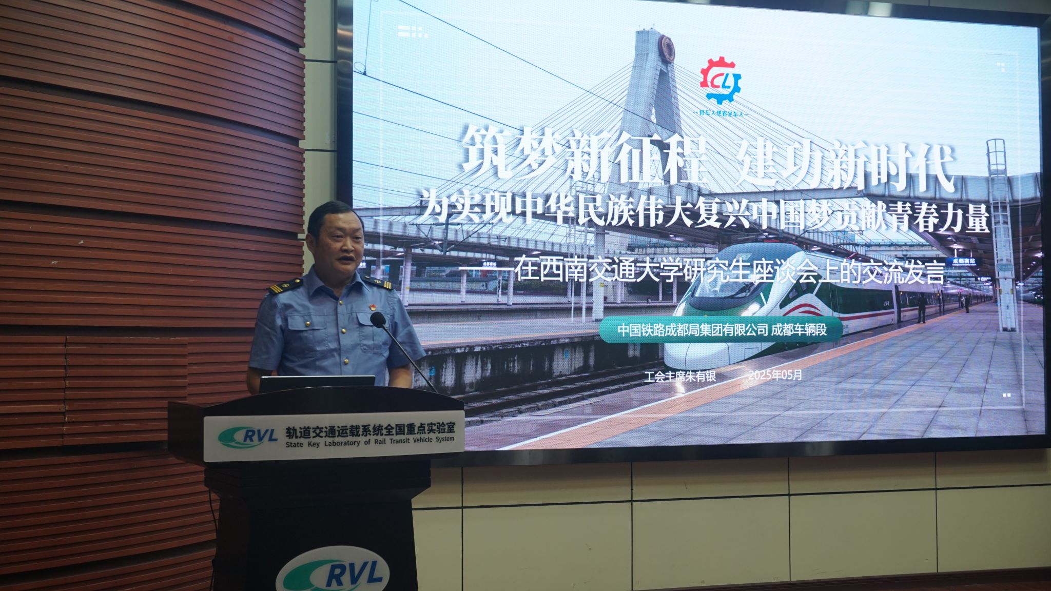 活动伊始,朱有银副段长开展“铁路局工作经验及职业规划”的主题分享,围绕铁路精神的传承与创新、职业规划的目标与行动以及岗位成才的实践与成长三个方面展开深入讲解。他以中国铁路百年发展历程为脉络,阐释“人民铁路为人民”的精神内核。他说:“从成渝铁路到复兴号动车组,铁路人始终秉持‘逢山开路、遇水架桥’的先锋精神。新时代青年应传承这份担当,在岗位中实现价值。”他还强调青年要志存高远、脚踏实地,在新时代铁路建设中贡献智慧和力量。