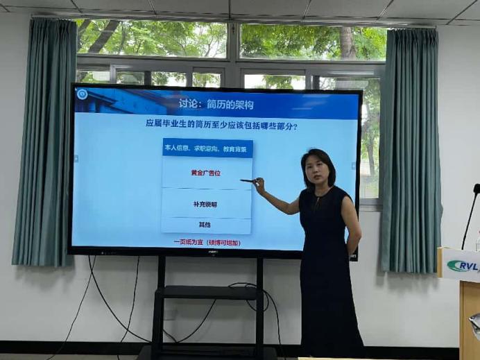 随后,朱老师详细讲解了简历制作的基本方法。她介绍,一份完整的简历通常由个人基本信息、教育背景、项目经历、社会经历、获奖与荣誉及其他部分构成。针对不同经历的同学,朱老师给出了差异化建议:大学生涯丰富的同学,应围绕求职意向和岗位需求,对经历进行精简,做到详略得当;而经历相对平淡的同学,则可细化每个项目,将教学实践、课程学习、各级奖励及技能等内容充分展现,并适当补充自我评价,以此丰富简历内容。此外,朱老师特别强调,简历制作务必遵循真实性、简洁性和客观性原则,采用倒叙方式呈现经历更符合人们的阅读习惯。