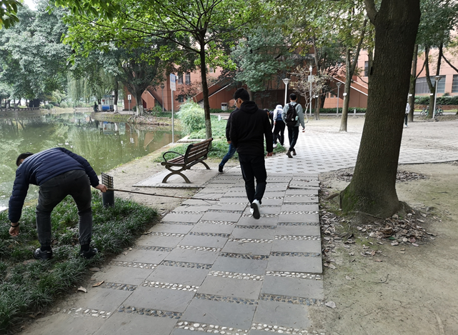为增强支部党员服务精神和奉献精神,为助力美丽、清洁校园建设,为弘扬志愿服务精神,牵引硕士18-6党支部组织开展清洁校园卫生志愿服务活动。11月19日在党支部书记戎有鑫的组织下,支部正式党员及预备党员在九里校区镜湖旁边集合,共同开展美丽校园的卫生清洁志愿服务。