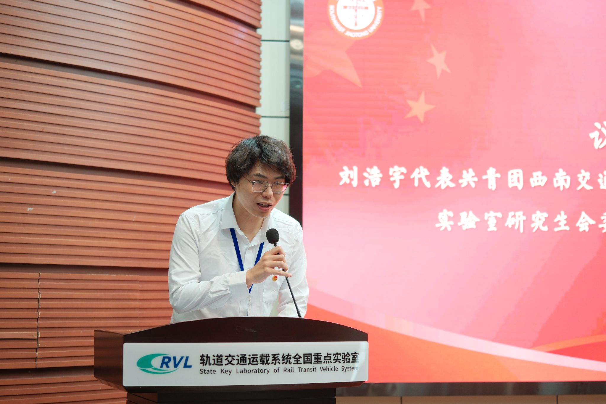 接下来,轨道运载研究生会主席团成员陈丙硕代表研究生会委员会介绍了本次大会提案工作的开展情况,他说:“轨道运载研究生会在提案工作中积极发挥桥梁纽带作用,认真听取同学们的问题与建议,推动提案工作常态化、制度化。”