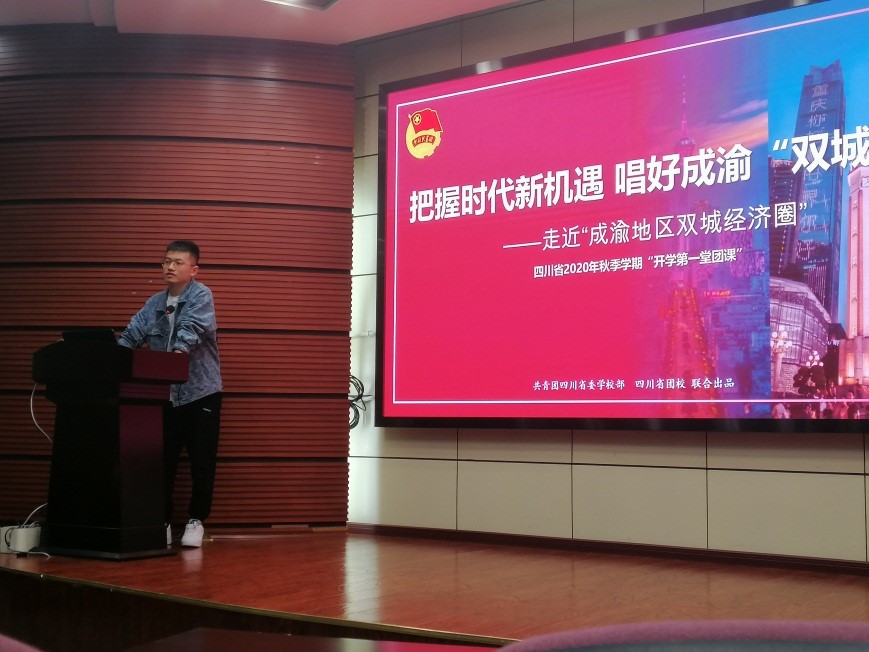 校团委关于开展秋季学期“开学第一堂团课”主题团日系列活动的号召,组织牵引2020级全体团支部通过线上和线下的方式开展了相关主题团课。团日活动主题紧扣“青年大学习”中坚定中国特色社会主义制度自信、增强青年爱国情怀的相关内容以及“成渝地区双城经济圈”等国家战略。