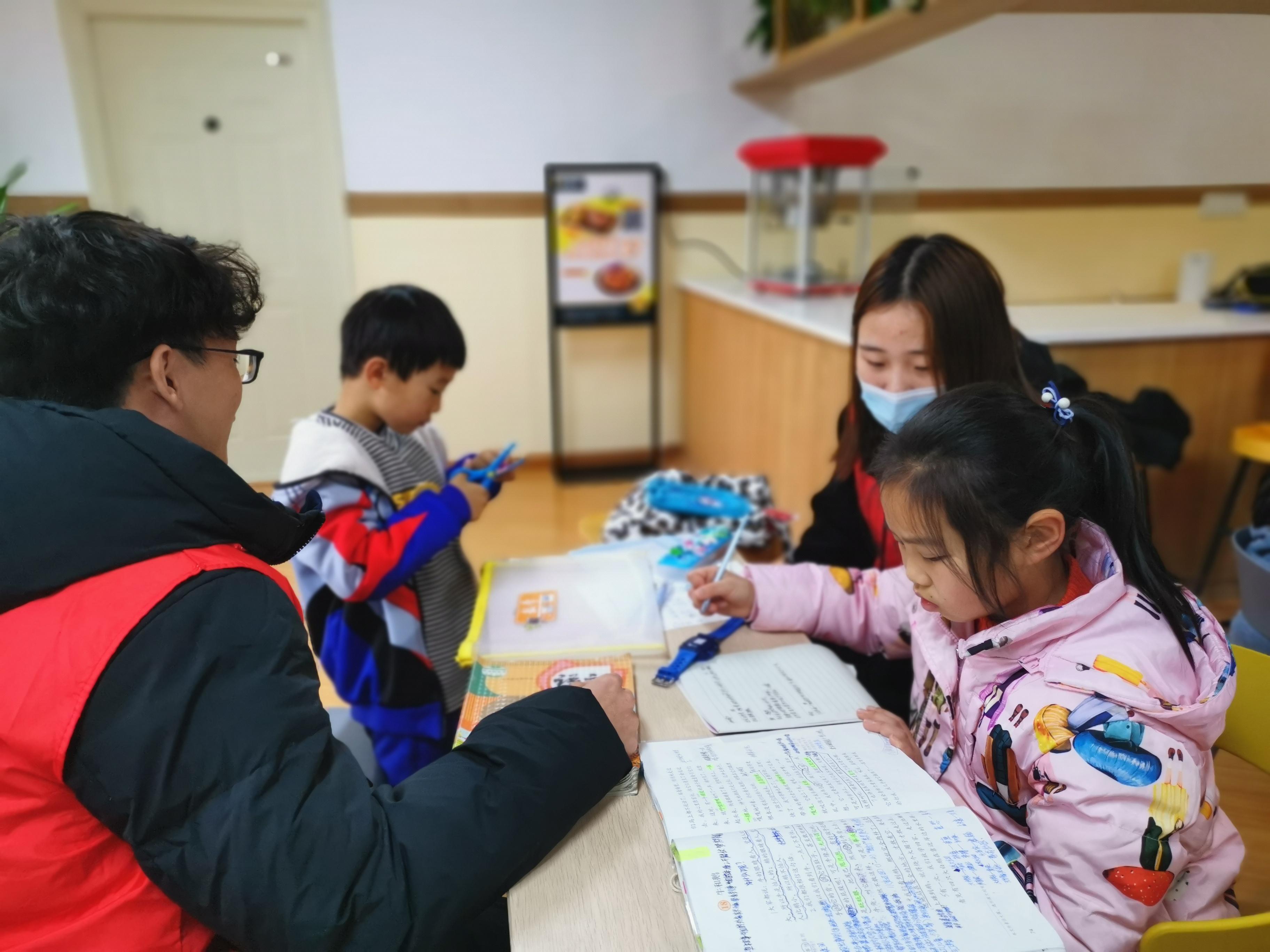 图2志愿者辅导小朋友完成作业