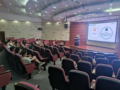 从事科研工作时,一边学习,一边解决科研难题的经历。李老师指出,在科研过程中,我们要主动思考问题、自主学习,不断提升自己的学习力、思考力和执行力;还要关注自己的身心健康,提升抗挫能力,预防心理疾病。