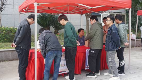 研究生会承办的以“轻身心,同欢乐,共游园”为主题的3.25(善爱我)校园心理健康文化节在九里校区牵引磁浮列车旁空地开展。