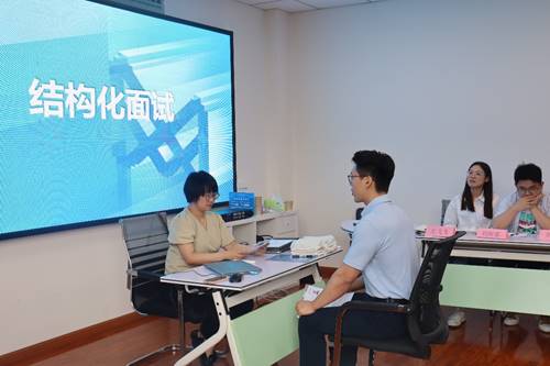 随后,刘蓉抽选2021级硕士左飞飞、2022级硕士雷越两名学生开展一对一模拟结构化面试。刘蓉模拟面试官,对两名模拟求职者的学生进行提问。“相较于其他求职者,你的核心竞争力是什么?”“你跨专业求职,是不是因为你专业学习能力不够?”“你大学社团经验很丰富,但这跟你意向的岗位并无直接关联,你怎么看待这件事情?”……一个个尖锐的问题呛得模拟被面者有些脸红。刘蓉笑着解释道,在真实的面试中,面试官的问题只会更加尖锐,这并不是有意在为难面试人员,而是在检测求职者的抗压能力。“只有抗住了这些压力,自信、真诚、充分地展现自己的优势,才有更多机会赢得面试。”她说。