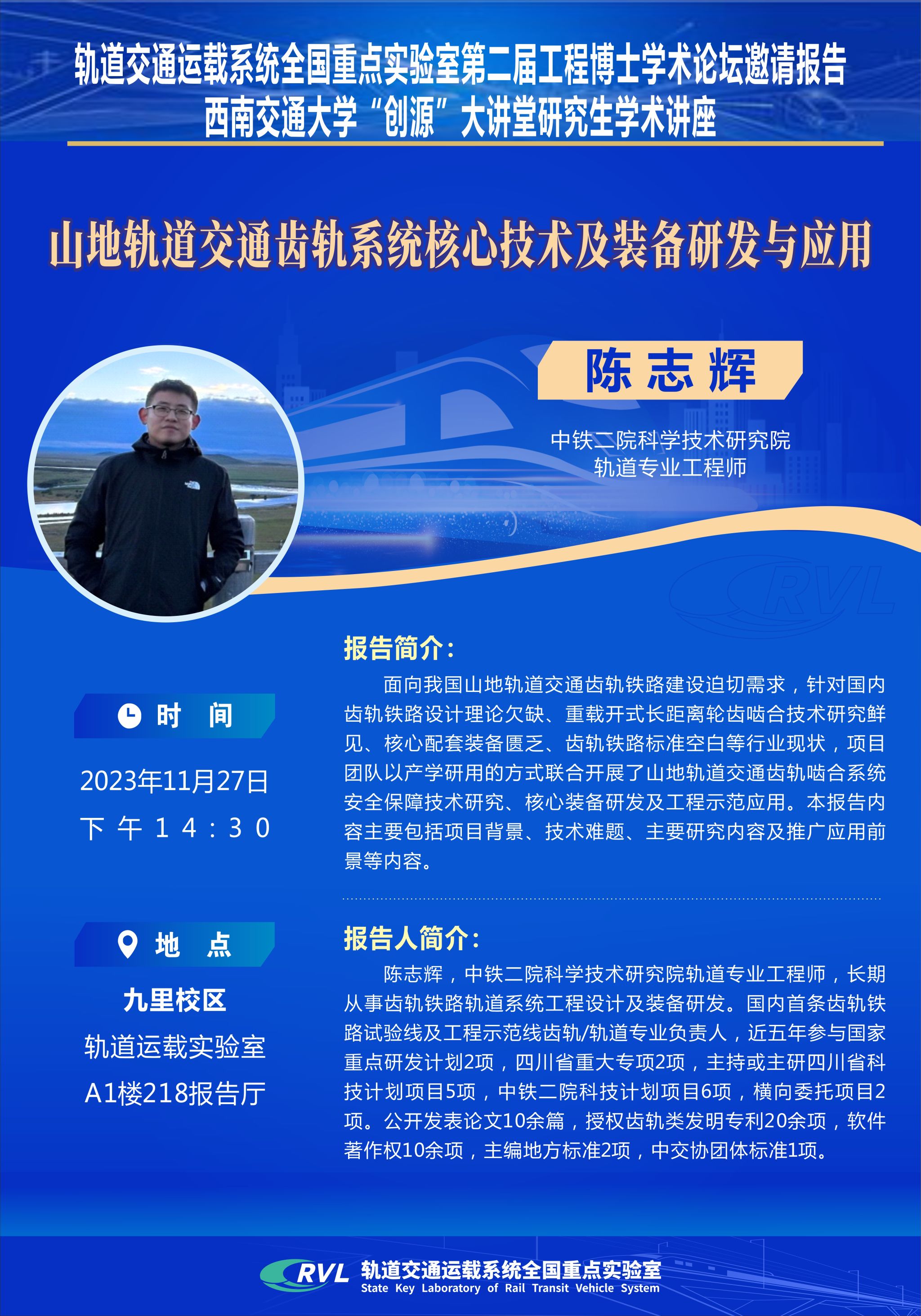 地点:轨道交通运载系统全国重点实验A1楼218会议室