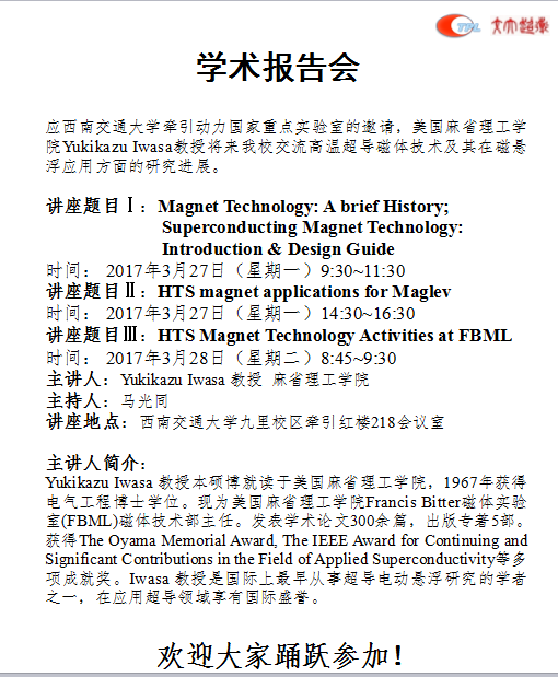 【学术讲座】Magnet Technology: A brief History; Superconducting Magnet Technology: Introduction & Design