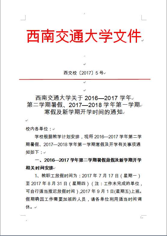 【转发校办】捷克论坛 关于2016-2017学年第二学期暑假、2017-2018学年第一学期寒假及新学期开学时间的通知