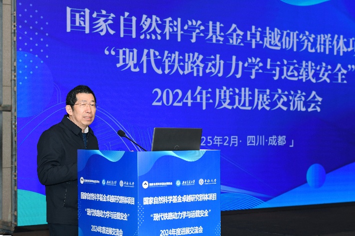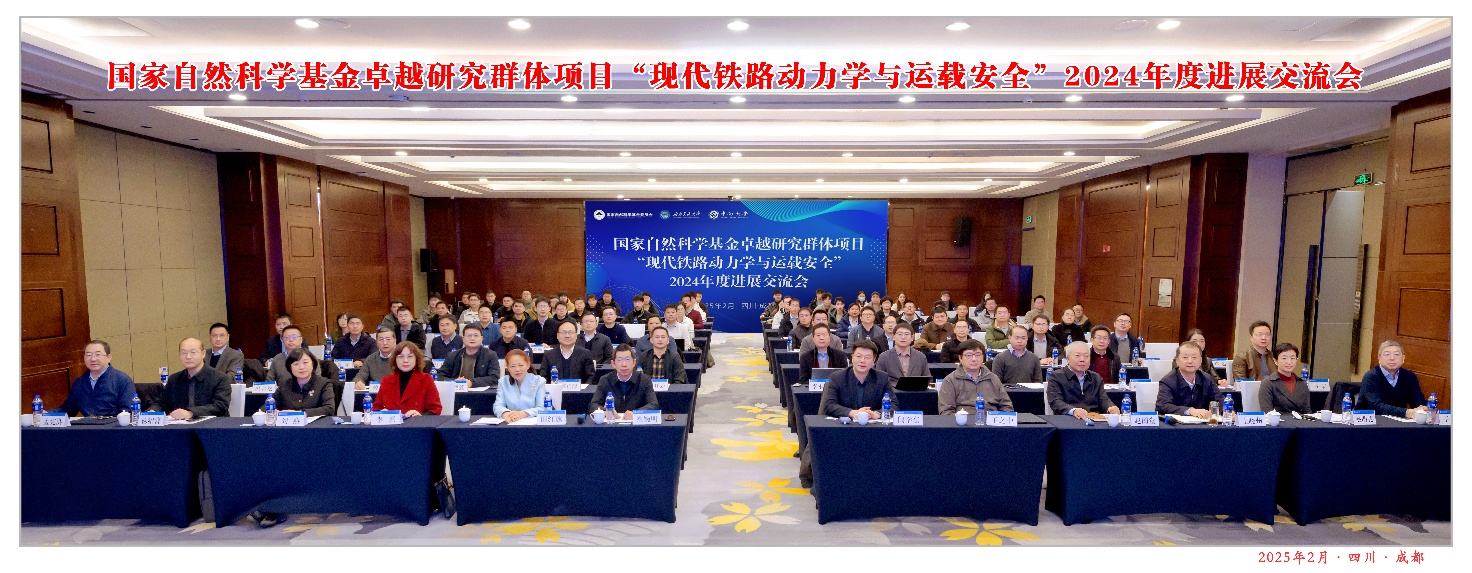 校长闫学东教授出席并致辞。会议邀请了哈尔滨工业大学李惠院士、国家铁路局科法司刘燕副司长、国铁集团赵国堂研究员、国铁集团川藏中心王晓州常务副主任、石家庄铁道大学杨绍普教授、国家高速列车技术创新中心赵明花教授级高工、国能朔黄铁路公司孟宪洪教授级高工等专家代表、以及10位行业青年学者代表参会指导。项目负责人翟婉明院士、项目骨干成员田红旗院士、王平教授、王开云教授、李永乐教授、以及项目组其他主要研究人员等100余人参加了本次会议。