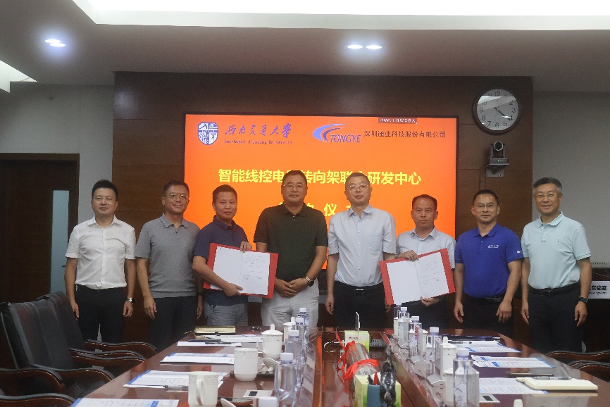 与深圳通业科技股份有限公司在成都举行“智能线控电子转向架校企联合研发中心”签约仪式。深圳通业科技股份有限公司终身荣誉董事长徐建英、董事长闫永革、总经理刘涛、总工程师彭琦允、研究院院长谭诗干,捷克论坛