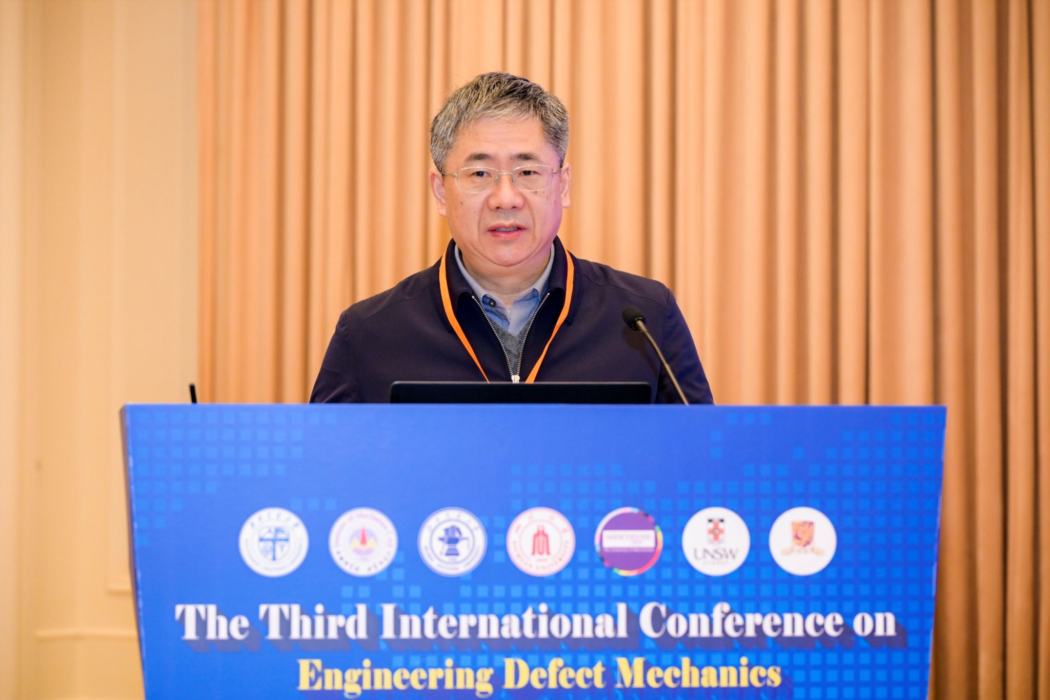 吴圣川研究员主持。康校长对中外参会代表的远道而来表示诚挚欢迎,期望各方通过深度学术交流,共同推动工程缺陷容限在关键承载结构安全评估中的创新应用与高质量发展。