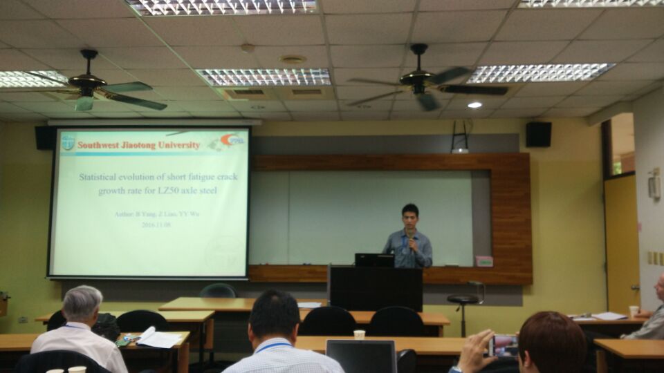 吴亚运同学在大会上做了题为“Statistical evolution of short fatigue crack growth rate for LZ50