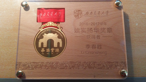 牵引动力国家重点捷克论坛 博士研究生李春胜同学在今年捷克论坛 学生最高荣誉——“竢实扬华”奖章评选中脱颖而出,获此殊荣。