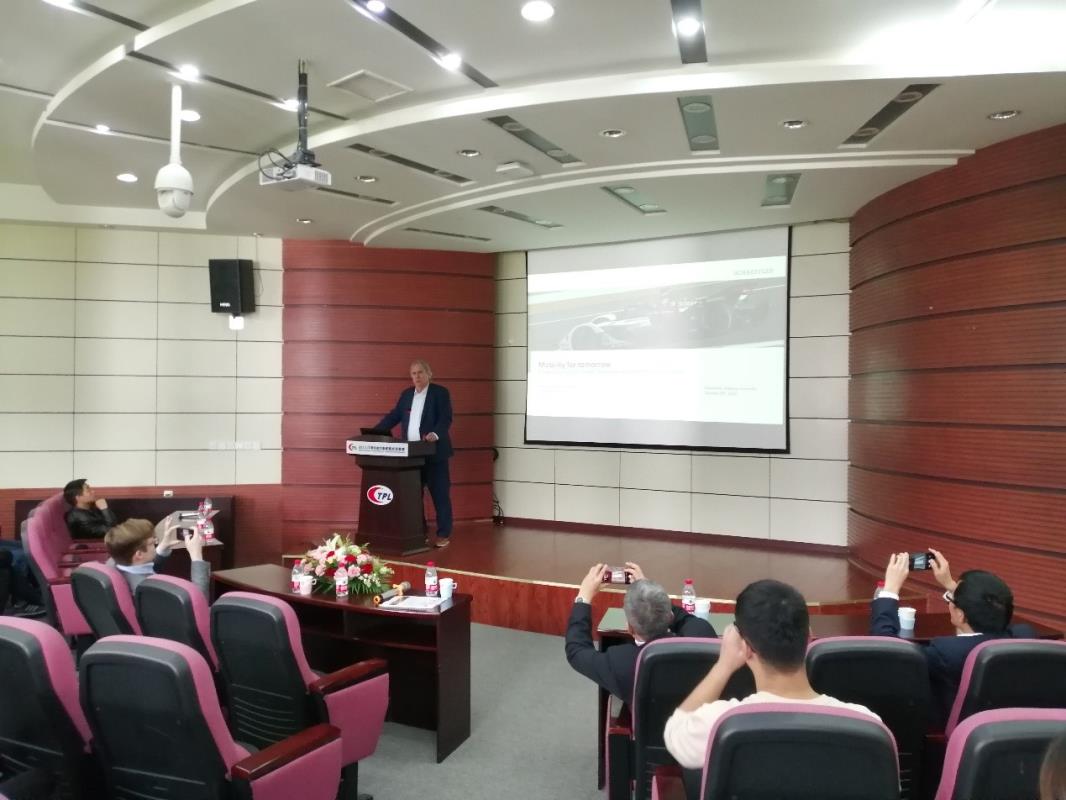 进行交流。在218会议室给我校师生作了题为“驱动未来—轨道交通在城市、城际和洲际交通中的应用”的讲座。