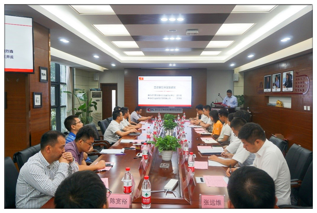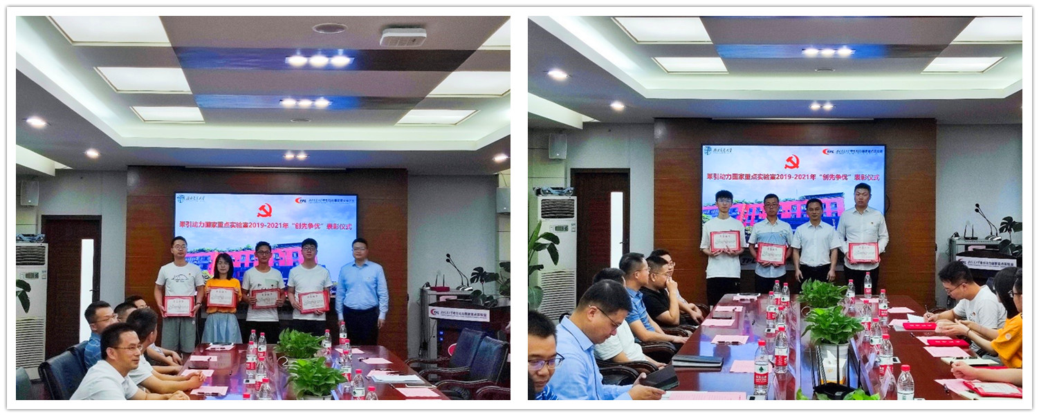 党委书记庞烈鑫、主任王开云为在2019-2021年“创先争优”活动中获得“优秀共产党员”荣誉称号的毕业生颁发荣誉证书,会场掌声热烈。