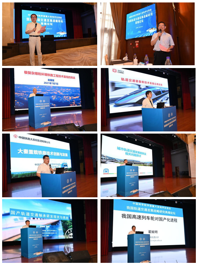 论坛报告环节分别由胡海岩院士和何满潮院士主持上下半场。我国轨道交通领域6名杰出的专家学者围绕高速、重载、城市轨道交通等方面的发展情况分别作了大会主题报告。