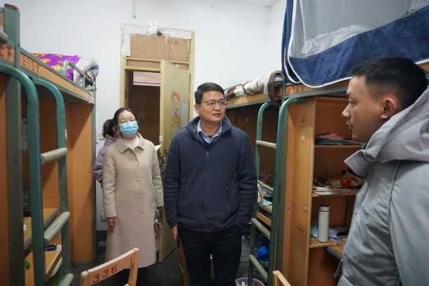 检查组重点走访了寒假留校学生宿舍,覆盖了九里校区眷诚斋2栋、6栋、8栋、11栋、15栋,扬华斋4栋、5栋、11栋的所有学生寝室。检查组主要排查了包括宿舍消防安全隐患,消防安全设施状况、有无大功率设备等在内的安全事项;同时对宿舍环境是否整洁,有无随意堆放杂物垃圾等情况也进行了检查,并提出整改意见。检查过程中,老师们排查仔细,与留寝同学亲切交谈,提醒同学们寒假留校期间一定要严格遵守学生公寓管理办法,切实提高安全防范意识,要注意消防安全,保持宿舍整洁。同学们表示,将积极自查、改正不良用电、卫生习惯,严格遵守学校宿舍管理各项规章制度,维护宿舍卫生;规范作息和生活习惯,共同维护安全、文明、和谐的良好宿舍氛围。