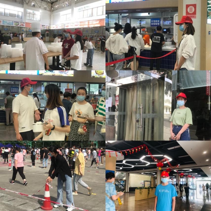 牵引22级硕士周雨薇说:在此次志愿者活动中,我感受到全校师生和工作人员的齐心协力,食堂内大家几乎都做到了正确佩戴口罩,有序排队,错峰就餐,但也有一些同学为了等待同伴,打完饭未能及时离开,而是在食堂门口逗留。我相信只要大家齐心协力,终将战胜疫情!
