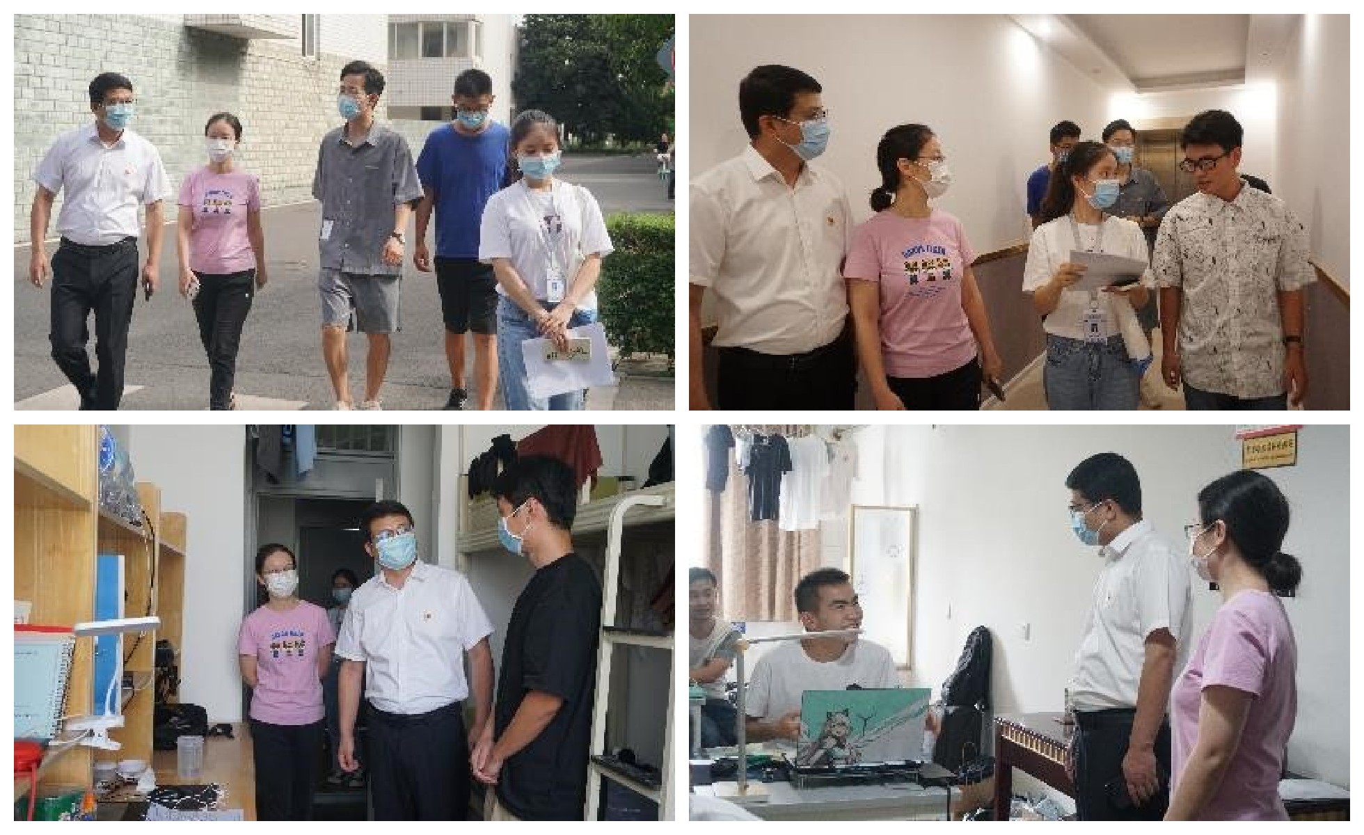 的校园生活,完成从本科生到研究生的身份和学习方法的转变。成都疫情爆发以来,为避免聚集、做好防疫,课程全部转为线上开展,走访过程中亦有不少同学在上网课,庞书记和李书记细心观察学生上课情况,亲切询问同学们是否适应网课以及是否存在困难。近期成都疫情形势严峻,老师们特别强调,当下最重要的就是正确佩戴口罩、做好个人防护,每日按时做好核酸检测,并鼓励同学们努力学习、积极锻炼、共克时艰。