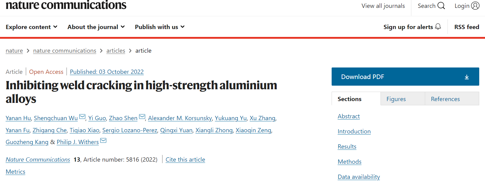 胡雅楠博士(现为力学与航天学院讲师),通讯作者为吴圣川研究员(康国政团队,共同作者)、上海交大沈朝副教授(曾小勤团队,共同作者)及曼彻斯特大学Philip J. Withers两院院士,完成单位还包括西南交大(虞雨框硕士生,张旭教授)、中科院金属所(郭翼研究员)、英国曼彻斯特大学(钟向莉高工)、牛津大学(Alexander M. Korsunsky教授,Sergio Lozano-Perez教授)、中科院上海光源(付亚楠研究员,肖体乔研究员)、中国航空制造技术研究院(车志刚研究员)和北京高能所北京光源(袁清习研究员)。