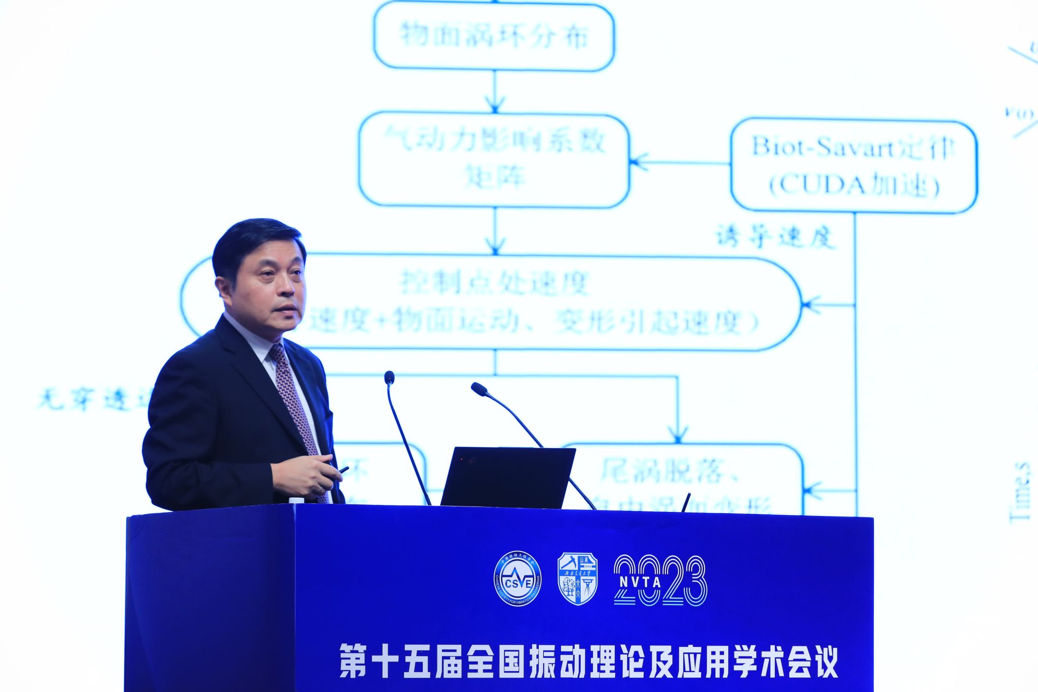 王开云研究员五位专家分别做了题为“飞翼布局飞行器的颤振研究”、“Changing Landscape in SHM: Sensing Virtualization and ML-enabled System Identification”、“从随机振动学到随机物理学-随机力学发展之我见”、“基于微波感知的振动测量理论与技术研究”、“重载铁路系统动力学理论与性能调控技术及应用研究”大会报告。