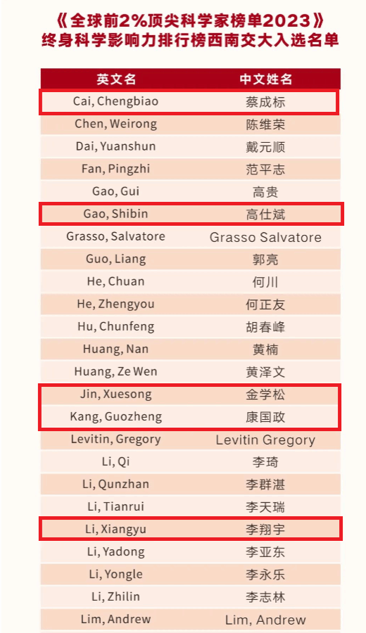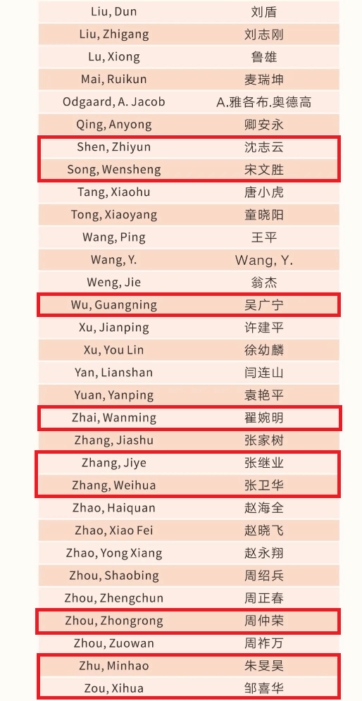 14位教师入选,分别为沈志云、翟婉明、张卫华、周仲荣、康国政、高仕斌、金学松、蔡成标、吴广宁、朱旻昊、张继业、李翔宇、邹喜华、宋文胜。