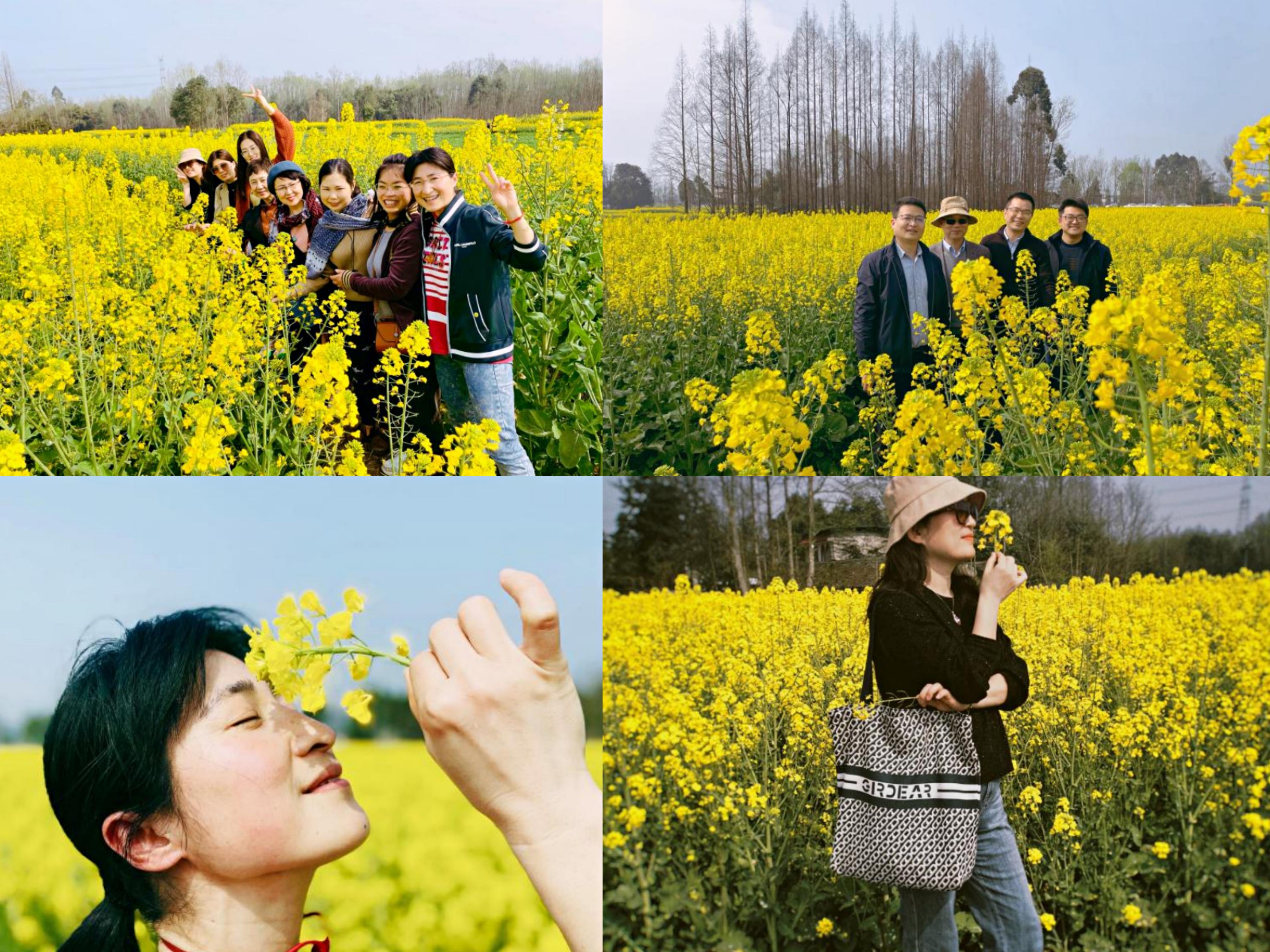 三月八日下午,女教职工们来到五星村,遍野都是竞相怒放的油菜花,放眼望去一片金黄,令人叹为观止。感受着油菜花海的独特清香,女教职工们争先恐后地涌入田间与花斗艳,花海中洋溢着大家的欢声笑语。