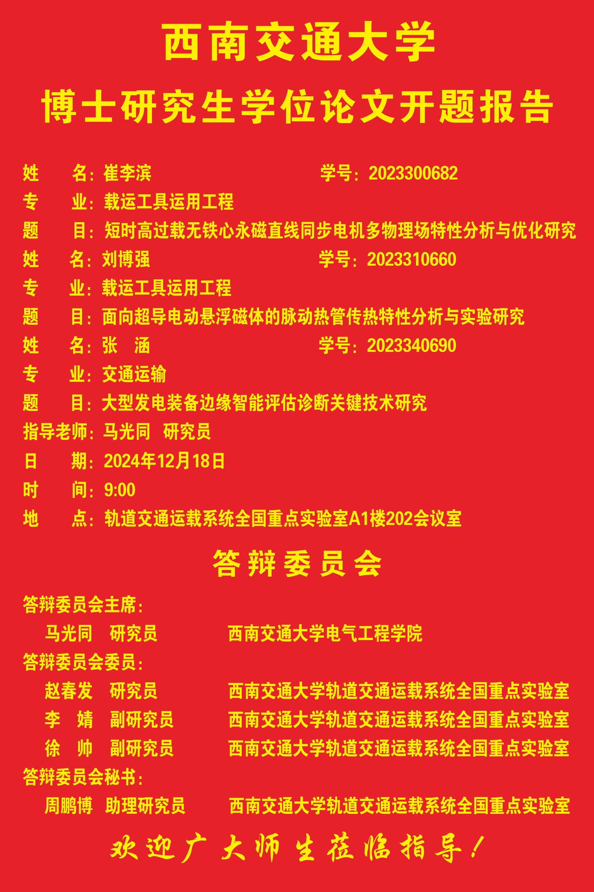 捷克论坛 崔李滨博士、刘博强博士、张涵博士学位论文开题报告