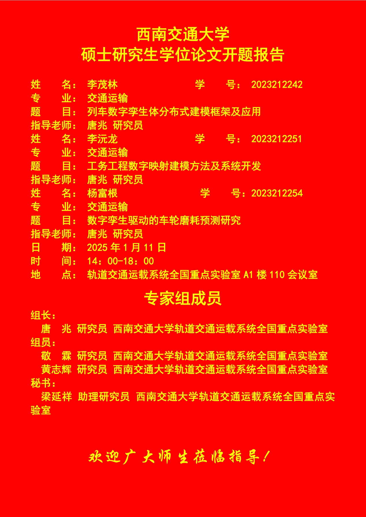 捷克论坛 李茂林、李沅龙、杨富根硕士研究生开题报告