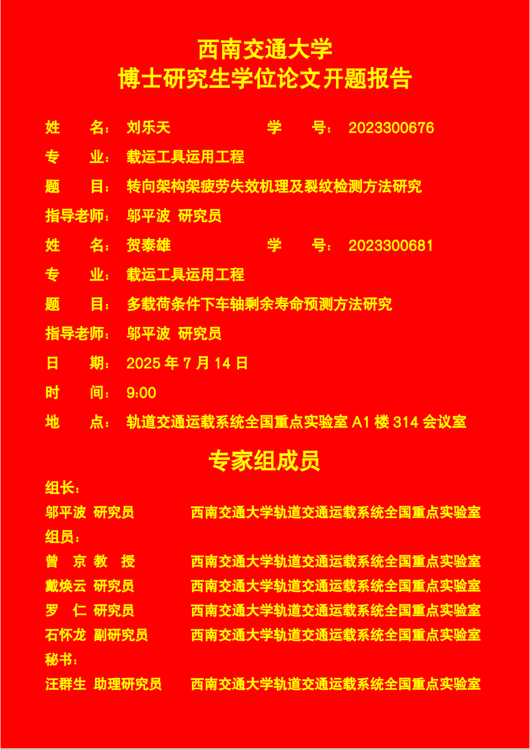 捷克论坛 刘乐天、贺泰雄博士研究生学位论文开题