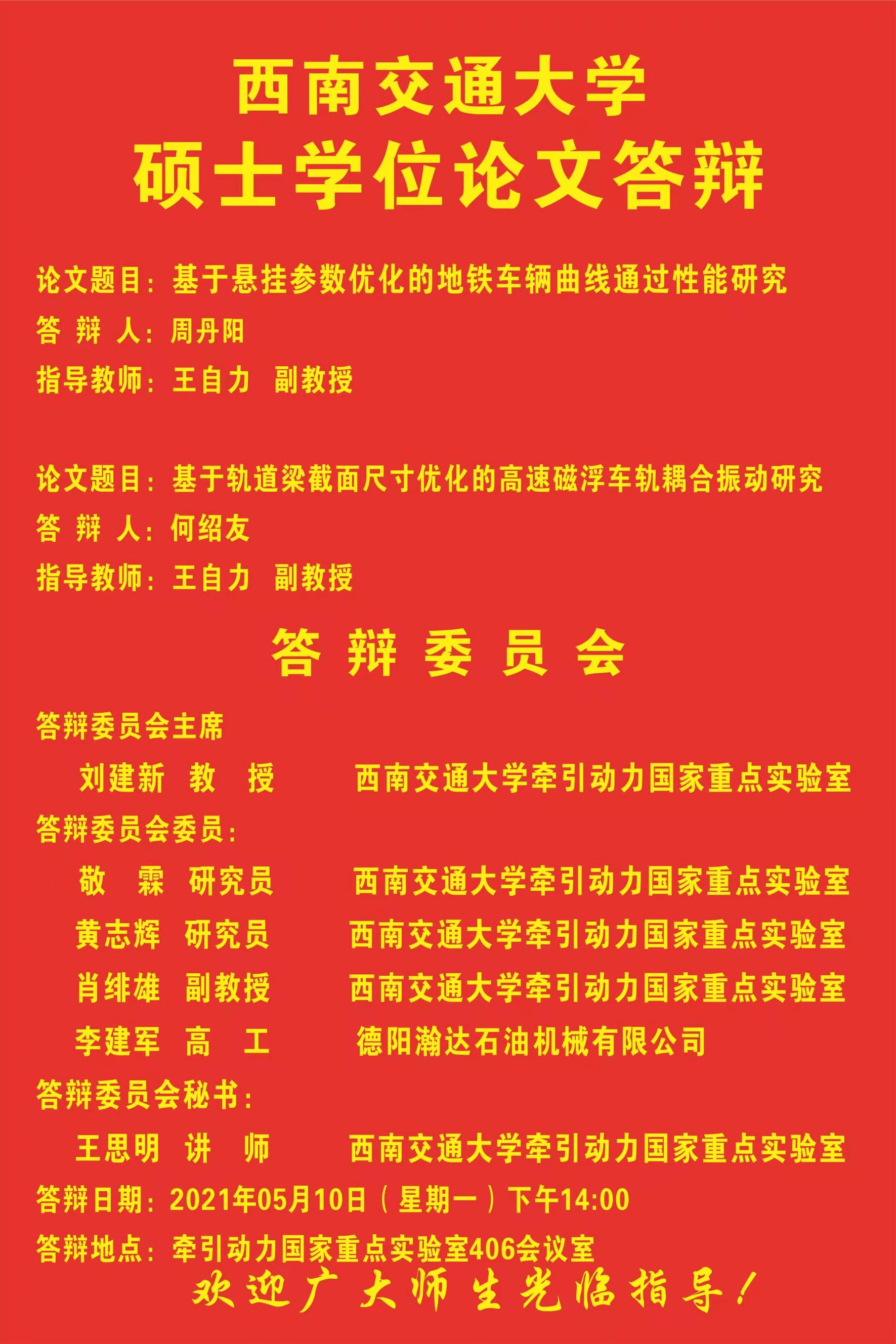 来源: 发布者:牵引动力研究生教育办公室 日期:2021/05/08 17:19:14 点击数: