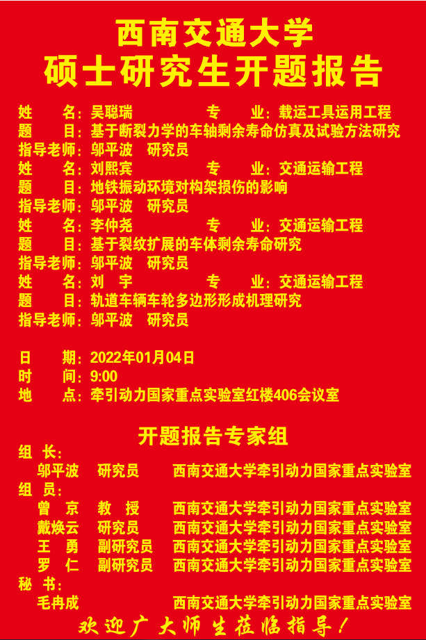 捷克论坛 吴聪瑞、刘熙宾、李仲尧、刘宇硕士研究生开题报告