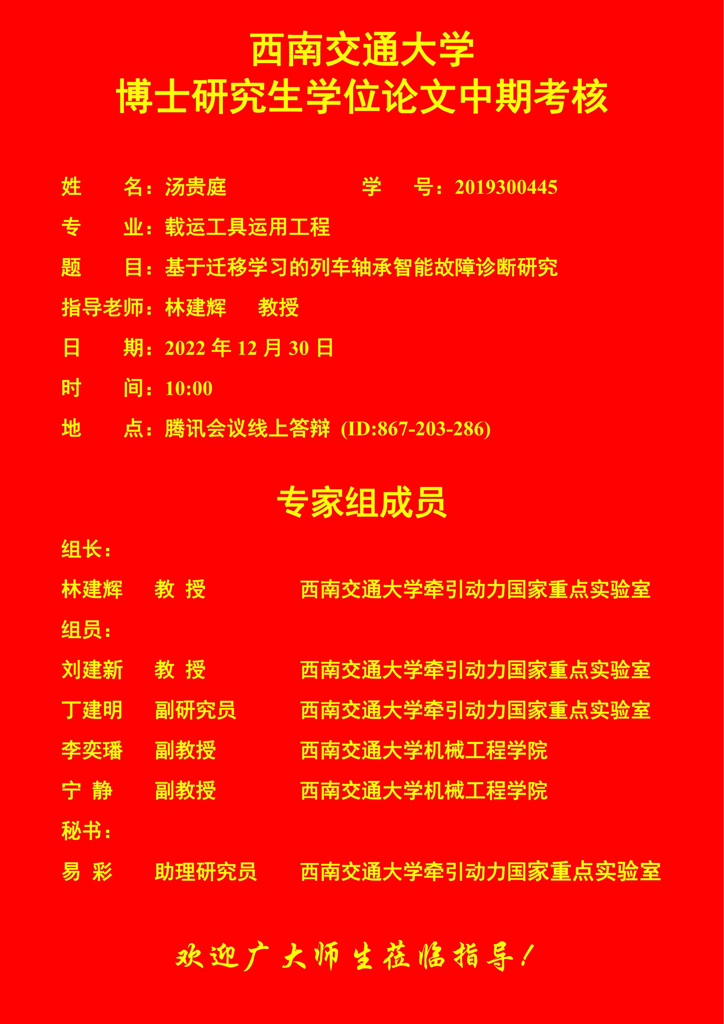 捷克论坛 汤贵庭博士研究生学位论文中期考核