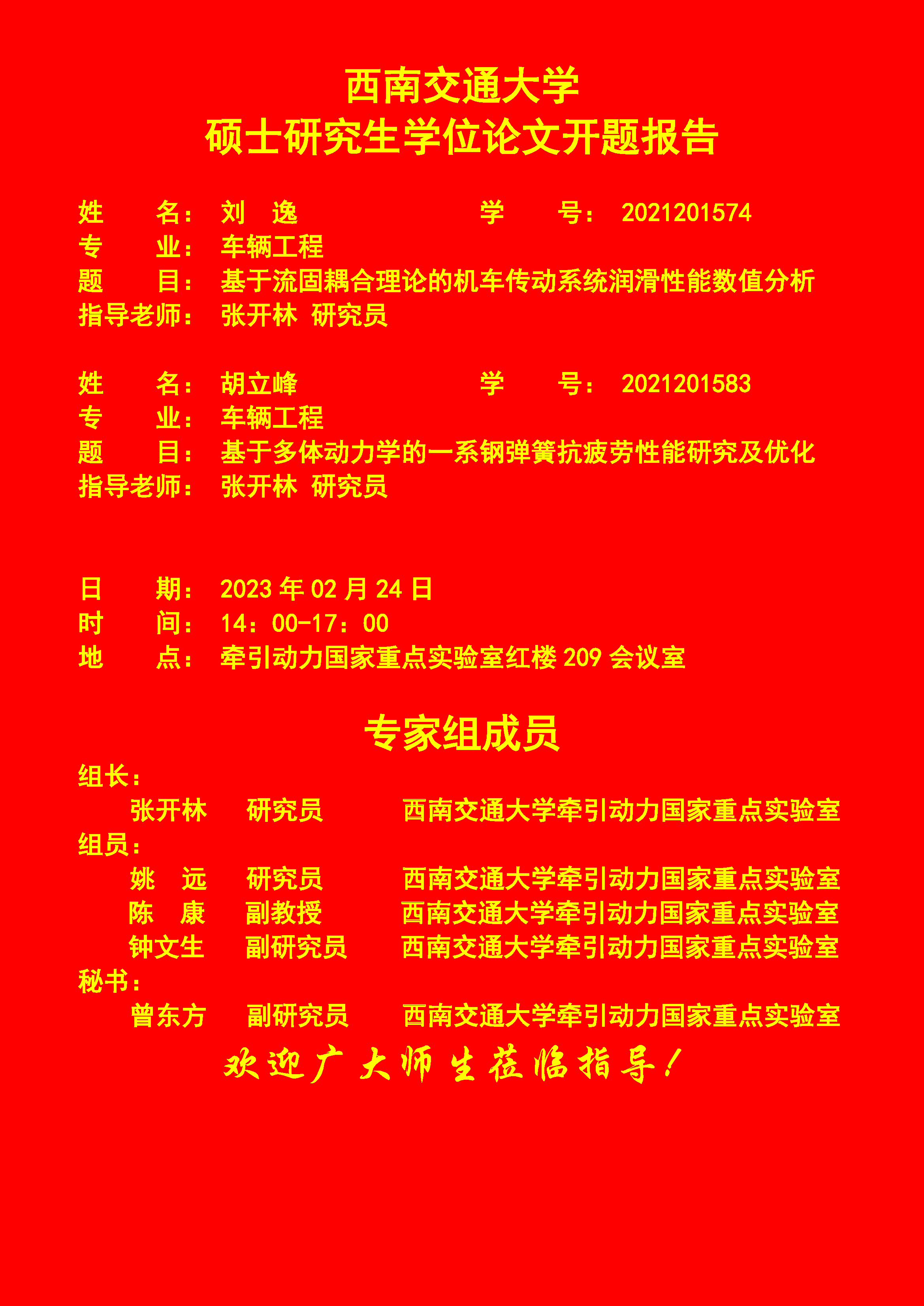 捷克论坛 刘逸、胡立峰硕士研究生开题报告