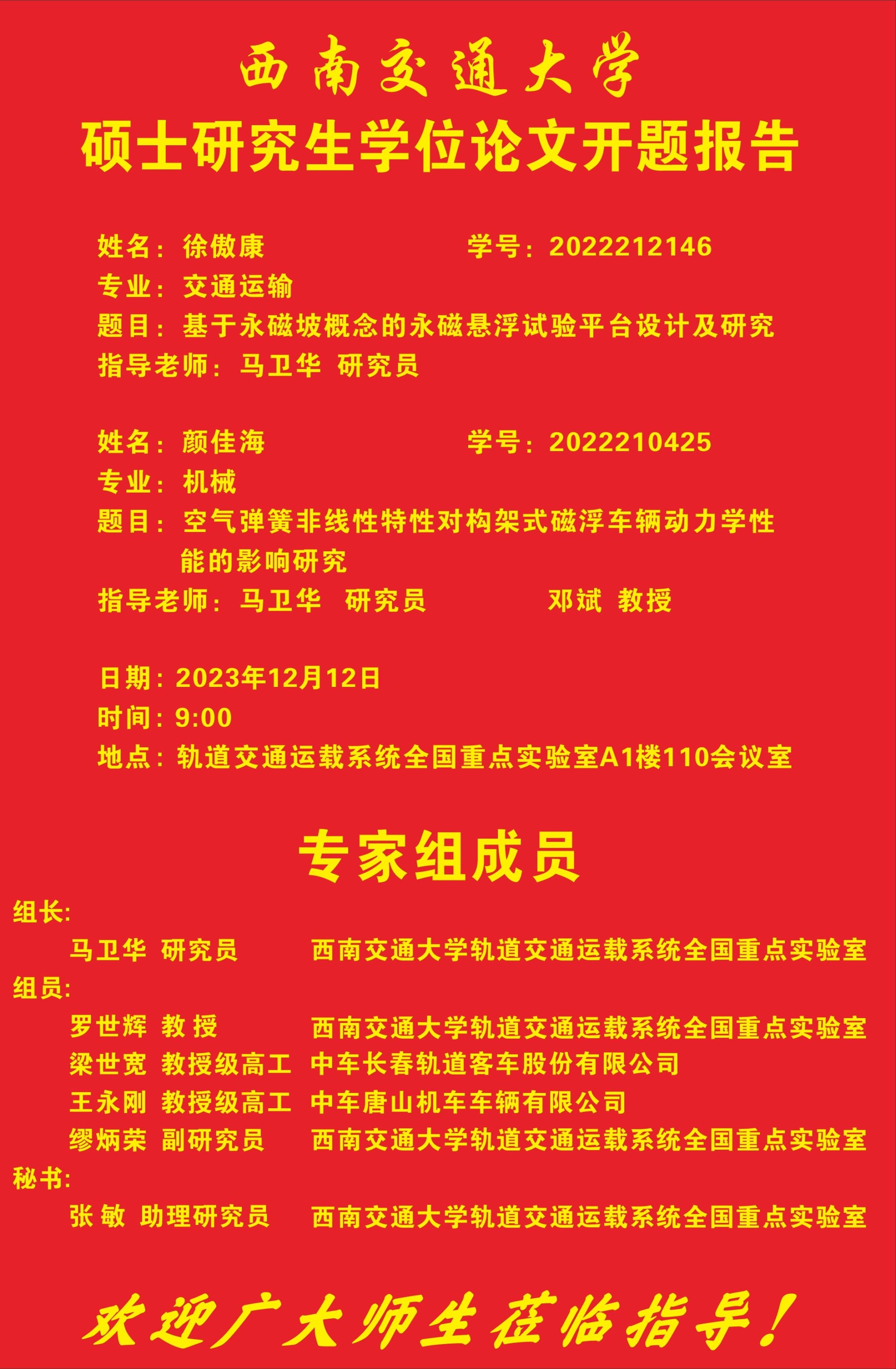 捷克论坛 徐傲康、颜佳海硕士研究生开题报告
