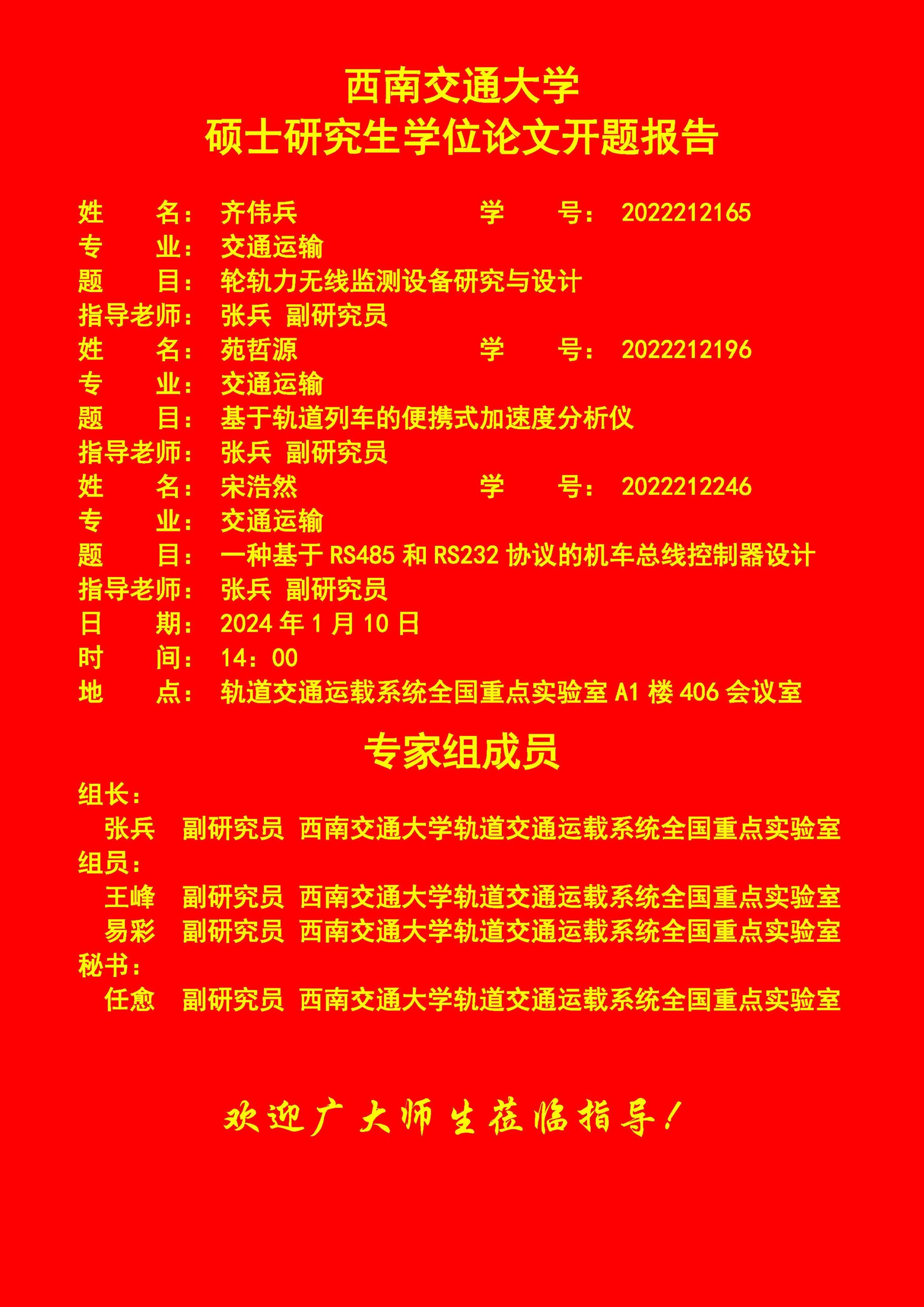 捷克论坛 齐伟兵、苑哲源、宋浩然硕士研究生开题报告